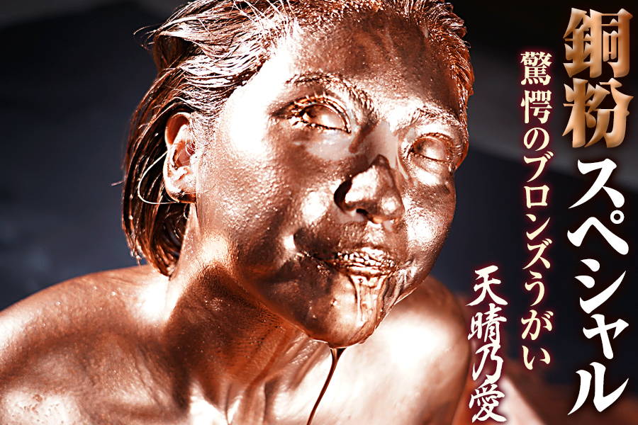 天晴乃愛が銅粉をたっぷりと口に含み、ガラガラとうがいをするメッシーで初の作品!床に這いつくばり何度もジュルジュルと銅粉をすすり、口に貯めて垂れ流し!大量の銅粉をダラダラ〜ッと顔に、オッパイに、お尻に、そして口内に、何度も浴びてドロドロのブロンズガールに!剛毛オマンコまで全て銅でメタリックに輝き、顔に銅粉を垂らされながらメッシーオナニーで大量潮吹き!目までブロンズに染めて口からデロデロと銅粉を垂らしながら、くねくねと妖艶に動き回るブロンズガール!