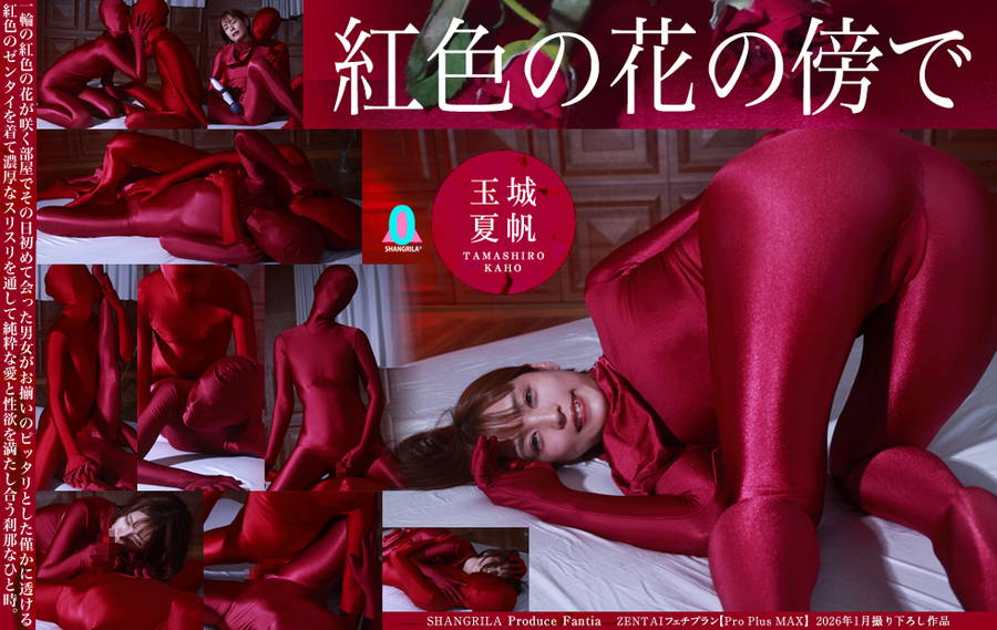 一輪の紅色の花が咲く部屋でその日初めて会った男女がお揃いのピッタリとした僅かに透ける紅色のゼンタイを着て濃厚なスリスリを通して純粋な愛と性欲を満たし合う刹那なひと時。