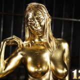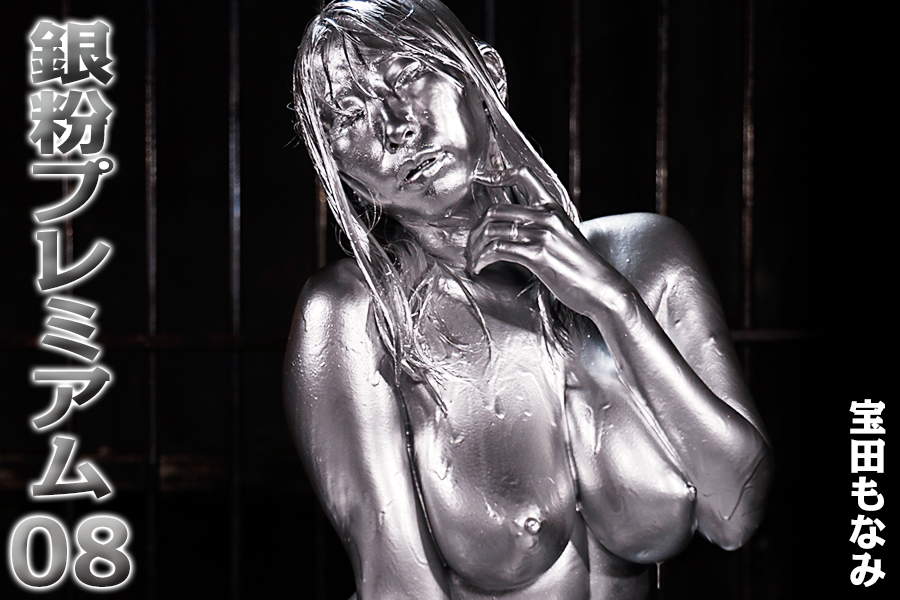 たわわなオッパイの宝田もなみちゃんが金粉に続いて銀粉姿を披露!!白い美肌に丁寧に銀粉を塗るもなみちゃん。鼠径部、お尻、背中、おっぱい、と塗り終わったら髪の毛とお顔までシルバー美女に変身!頭から銀粉を垂らされメッシー感に目覚めてオナニーを始めちゃいます!そのままハゲオヤジの顔舐めに突入!!おでこ、鼻、頬、顎、とゆっくり丁寧に舐め舐めご奉仕。舐める度にムニュムニュッとつぶれる巨乳がエロイ!!顔舐めオッパイ当て手コキでシルバーチンコもフル勃起!!ラストは頭から銀粉をぶっ被り顔からダラダラ銀粉を垂らしながらメッシー感に浸っちゃいます…。